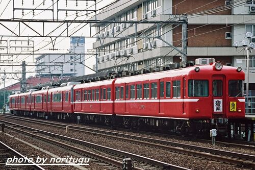 2004年8月26日 二ツ杁に退避する1542レ。この日は5515Fが先頭だった。 当時の名鉄ファンでは有名な平日ダイヤの1542列車、急行碧南行き。須ヶ口→知立でSR2が2+2+2の三重連となるため、名鉄ファンには人気の列車でした。 2003年秋にリバイバルカラーとなった5…
