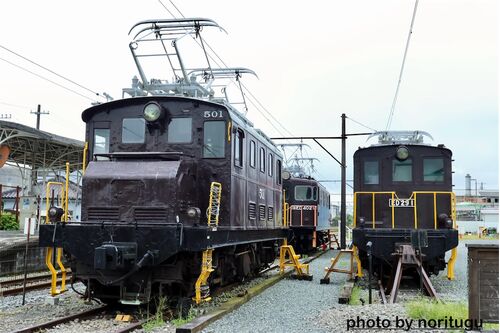⚫︎ 2024年7月14日 がくてつ機関車ひろばに保存されている機関車たち。 名鉄には一風変わった形の電気機関車が一時期運用されていました。ちょうどデキ600のような凸型と、デキ400のような箱型のハイブリッドのような、デキ501と言う機関車で、1940〜1969の29…