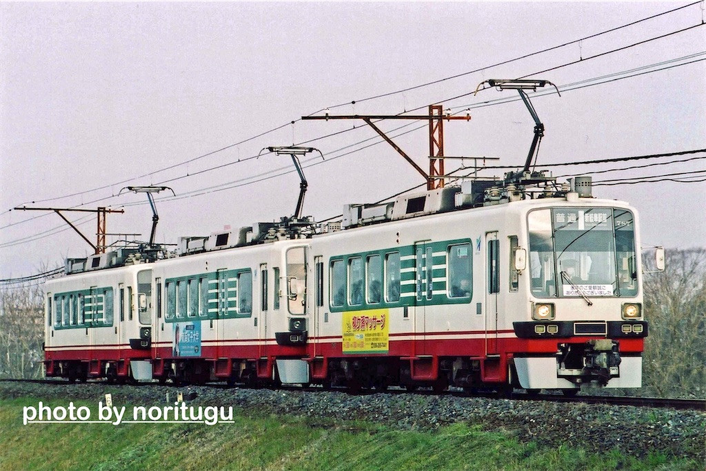 ⚫︎2005年3月9日 下方の鉄橋を渡るモ780形の三重連。